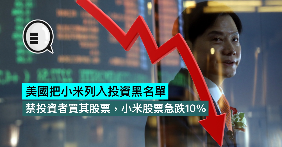 而列入黑名单的这9家公司意味着美国投资者于11月11日起不能再持有黑名单内的股份,小米今日香港开市就急跌,收市报跌10.26%。